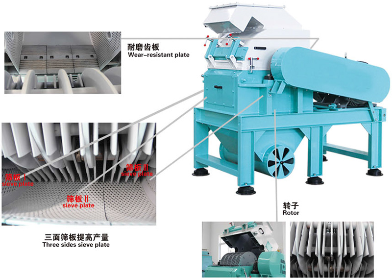 3.本系列粉碎機(jī)適用于纖維素、木質(zhì)素高的物料粉碎,產(chǎn)量高、能耗低。