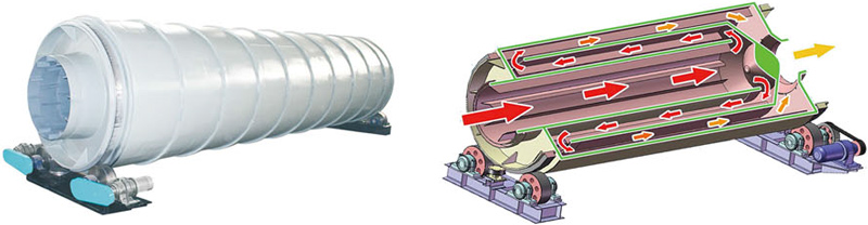 滾筒烘干機(jī)是熱氣流從尾部向前運(yùn)動(dòng),與物料充分接觸,通過熱傳導(dǎo)、對(duì)流、輻射傳熱量充分利用;